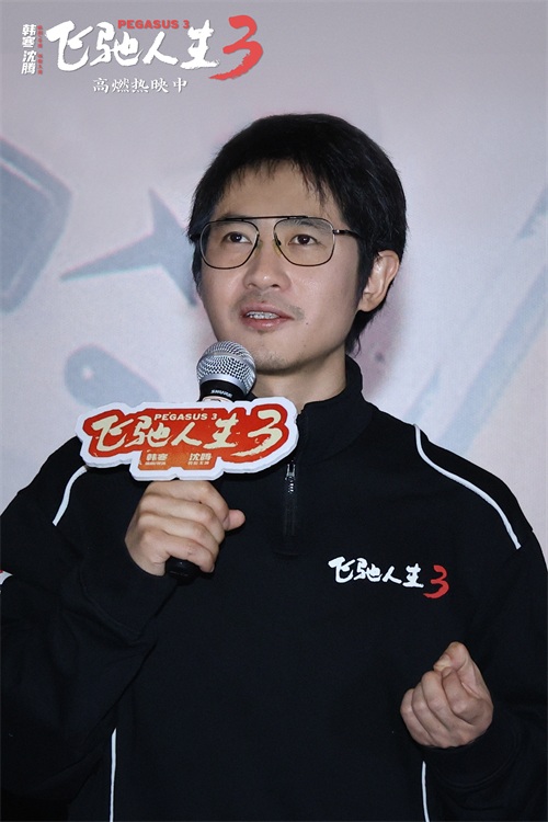 同期,在上海路演现场,韩寒分享了极具技术门槛的“野外赛场换胎名场面“的创作过程,坦言拍摄难度非常大,需要大量排练和时间卡点,希望那一分多钟的极限操作带给观众不一样的惊心动魄。饰演年轻张驰的王安宇也惊喜现身,透露了在进组后专门向腾哥求教“怎么能演得像你?”,结果腾哥开玩笑说可以帮他配音,把自己的声音套在他的脸上的逗趣往事。此外,他还表示,这是一部很燃很热血的合家欢电影,非常适合春节期间跟家人朋友一起观看,希望每位观众都可以为梦想一往无前。《飞驰人生3》正在热映中,截止大年初一,已有超过1200万观众与影片并肩同行,期待更多观众在《飞驰人生3》带来的欢笑与爽燃中,开启属于自己的飞驰人生!