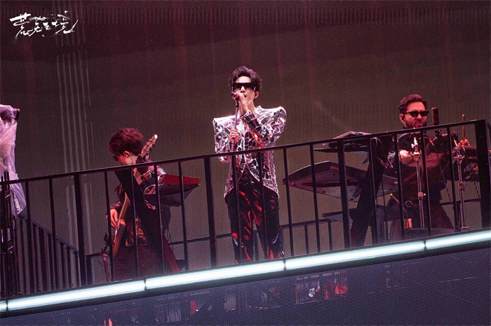 硬核机械外,舞台更藏着极致人文情怀。「荒芜之境」罕见将体育场化作沉浸式剧场,精准还原上世纪90年代至00年初的怀旧场景,舞台真实复刻了一栋三层的“落日旅馆”,顶层是海轻拂的海边露台,二层是花团簇拥的空中花园,一层则复刻出满是烟火气的旧日街巷:忘不了唱片行、街边零食小卖部、电线杆上的旧广告......陈楚生置身其中低吟浅唱,音乐与场景浑然一体,仿佛时光倒流。更动人的是,远处墙面上铺满了陈楚生从小到大的各时期照片,宛如一道“真实的来时路”在眼前展开。一系列设计仿若构建了一个“流动的时空剧场”:舞台的一边是象征未来与未知的机械魔盒与数字宇宙,另一边则是凝固着集体记忆的怀旧实景。而演出正在发生的此刻,恰恰成为连接过去与未来的“现在”。这种精心的并置,不仅创造了强烈的视觉与情感反差,更让“荒芜之境”升华为集体情感载体,瞬间将观众带回无忧无虑的小时候,在歌声的温度中,真切地体会时光的流动。这背后,亦体现了创作团队不炫技、不浮夸,在内容深度与情感共鸣上持续深耕的匠心。