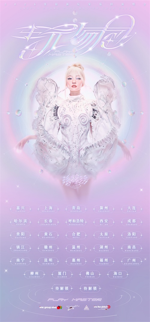由IMC Group Asia和天涵有限公司出品的2026 张韶涵「玩家」巡回演唱会(Angela Zhang Play Master Tour 2026)如约官宣,首轮正式解锁31座巡演城市——嘉兴、上海、青岛、滁州、大连、哈尔滨、长春、呼和浩特、西安、成都、贵阳、黄石、合肥、太原、洛阳、镇江、赣州、温州、湖州、南昌、南宁、昆明、惠州、福州、广州、柳州、厦门、佛山、海口、待解密的2座盲盒城市。