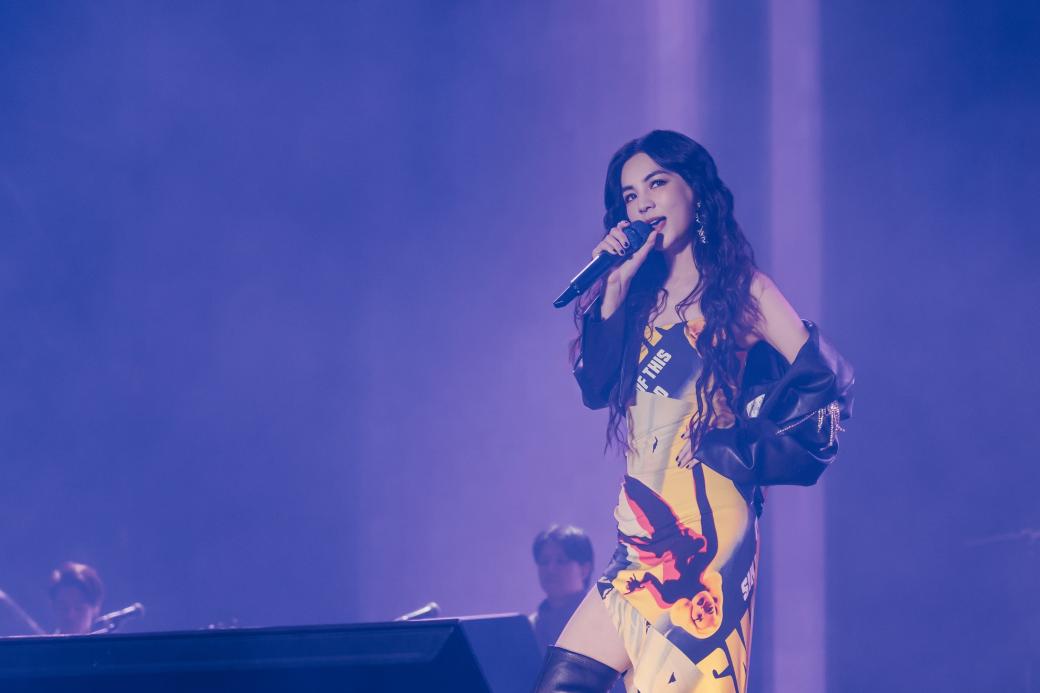 《废》伴奏响起,Ella陈嘉桦闪亮登场。演唱会上与现场乐队默契配合,玩转多种曲风,带来一个又一个充满活力和感染力的舞台表演。组曲《不想长大+中国话+SuperStar》引发全场欢呼,歌迷们随着歌声摇摆,完全沉浸在专属Ella陈嘉桦的多彩音乐世界。