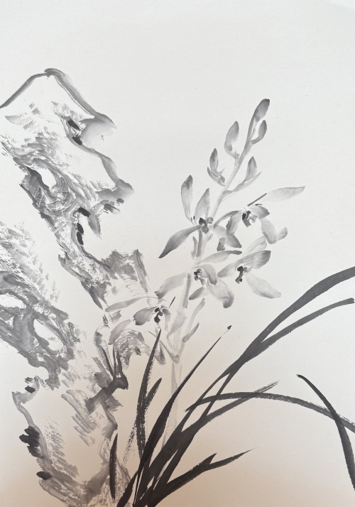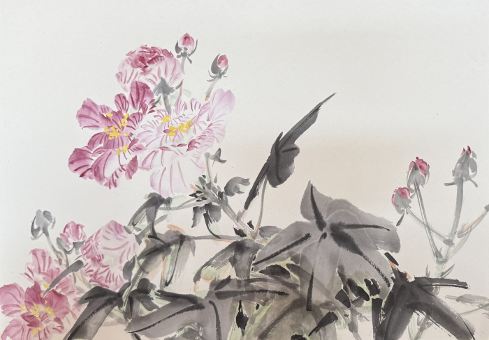 直播尾声现场作画环节,成为最具冲击力的 艺术现场马楚航笔下,或有淡彩晕染的兰花,嫩黄花瓣衬着紫红花心,长叶舒卷间尽得写意风流;或以黑白灰墨色塑造兰石相依之景,笔锋起落间,传统笔墨的骨力与气韵扑面而来;又或绘芙蓉花开,粉紫花朵与苍劲墨叶交织,尽显花开秾丽与生动。